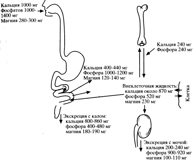 - Недостаток магния (гипомагниемия, если уровень Mg опускается ниже 0,5 ммоль/л) может снизить секрецию паратиреоидного гормона и нарушить реакцию органов-мишеней. Однако такая гипокальциемия может быть устранена при восполнении дефицита магния (например, с помощью магниевых препаратов), что способствует повышению уровня ПТГ в крови. Это, в свою очередь, задерживает кальций в почках и активирует его участие в обменных процессах.