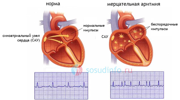 - Мерцательная аритмия или фибрилляция предсердий (мерцание и трепетание предсердий);