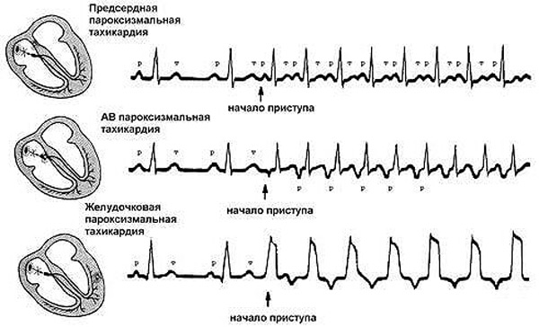 - Пароксизмальная тахикардия (предсердная, желудочковая);